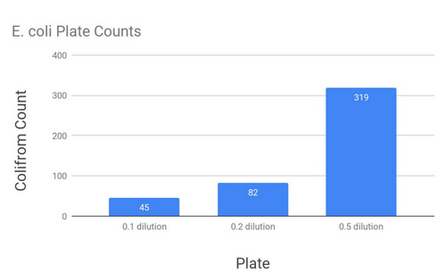 After the process of plating, counting and extrapolating data for the amount of E. coli in a sample, I was able to test my spectrophotometer.